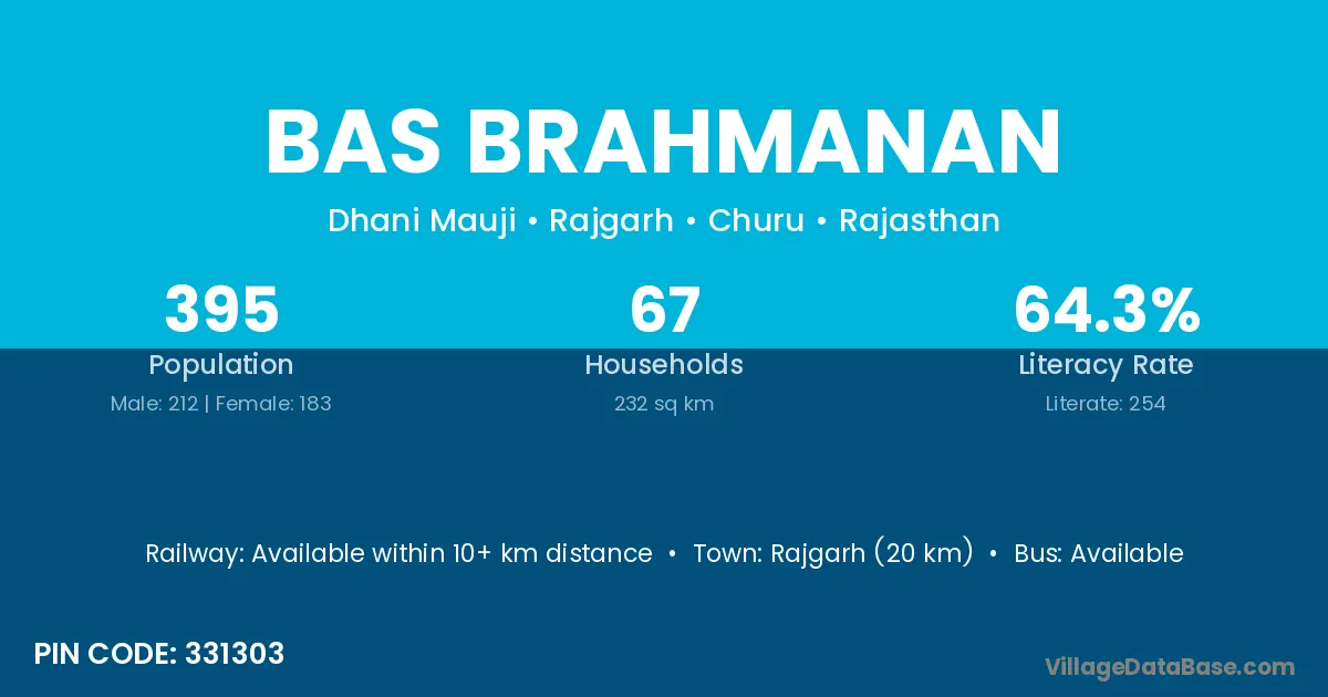 Rajgarh (20 km) is the nearest town to Bas Brahmanan village for major economic activities and is located approximately 20 km away.