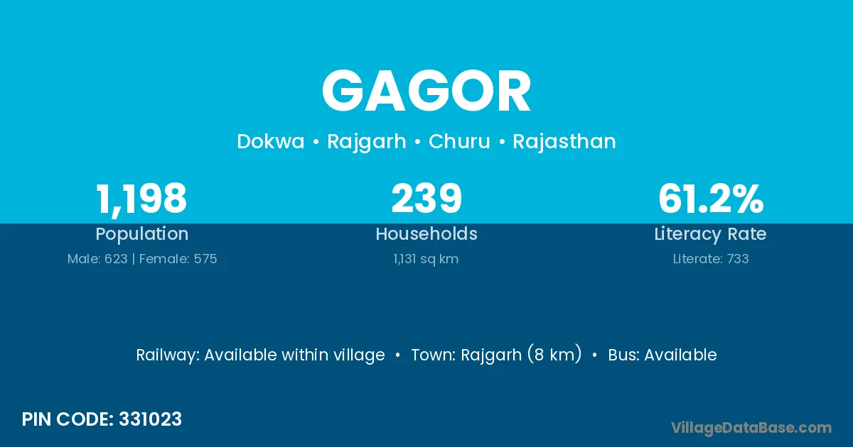 Rajgarh (8 km) is the nearest town to Gagor village for major economic activities and is located approximately 8 km away.