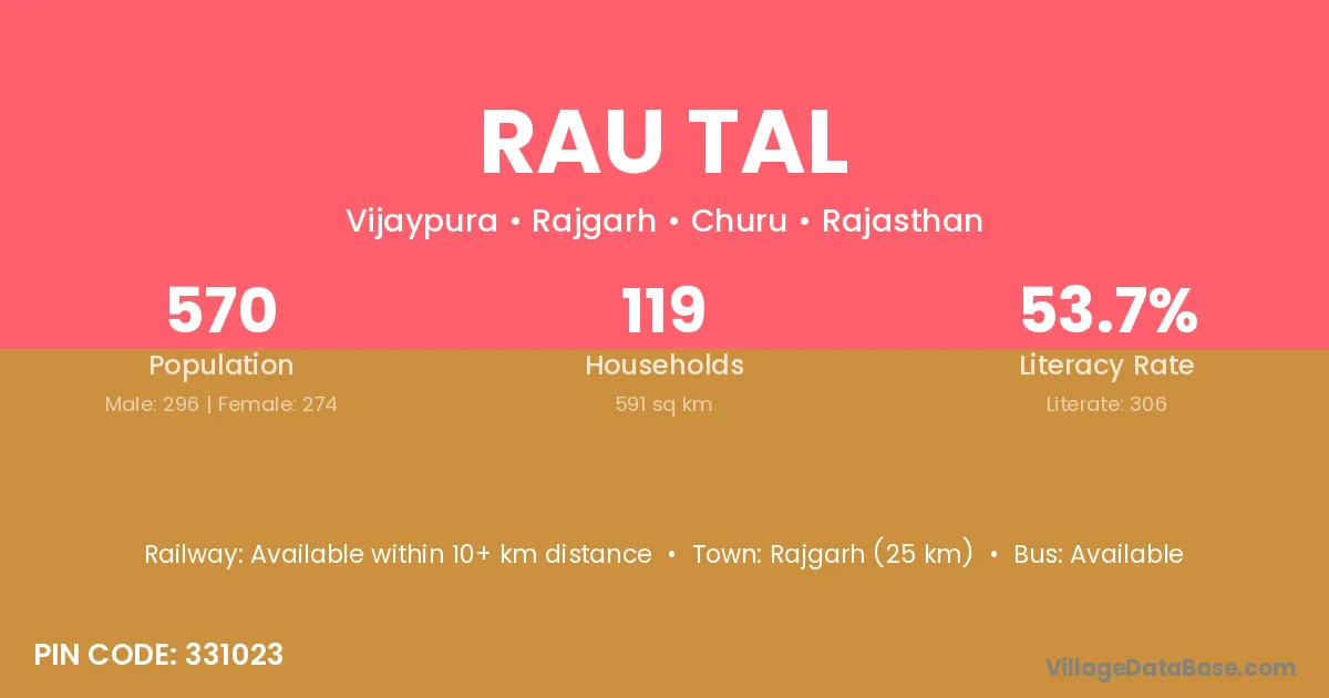 Rajgarh (25 km) is the nearest town to Rau Tal village for major economic activities and is located approximately 25 km away.