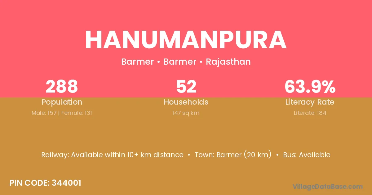 Ratangarh (25 km) is the nearest town to Hanumanpura village for major economic activities and is located approximately 25 km away.