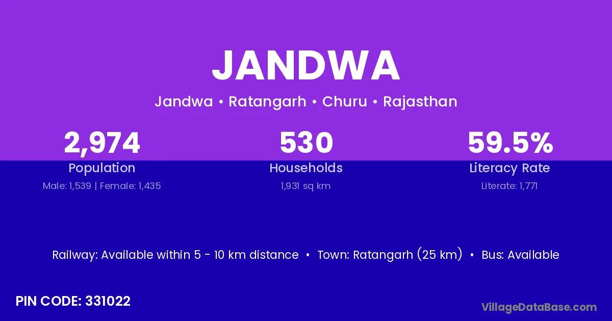 Ratangarh (25 km) is the nearest town to Jandwa village for major economic activities and is located approximately 25 km away.