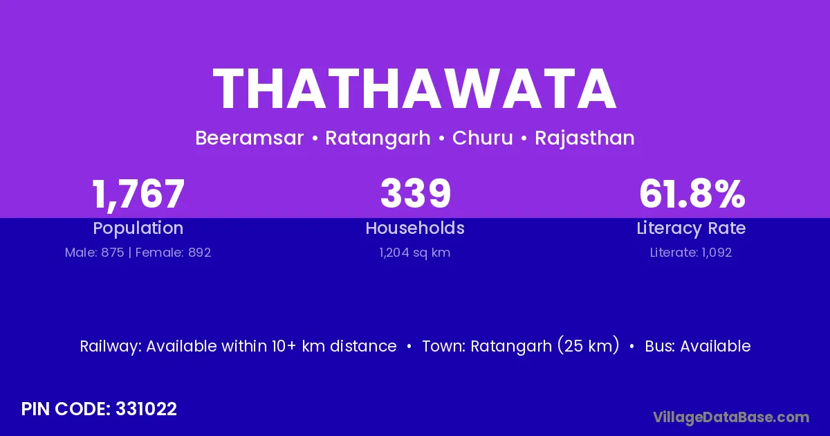 Ratangarh (25 km) is the nearest town to Thathawata village for major economic activities and is located approximately 25 km away.