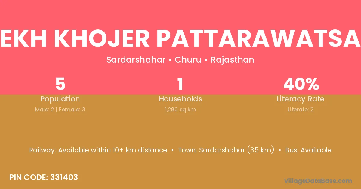 Rekh Khojer Pattarawatsar village has a total population of 5 people, of which 2 are males and 3 are females.