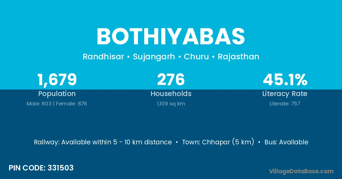 According to Census 2011 information, the village code of Bothiyabas village is 331503.