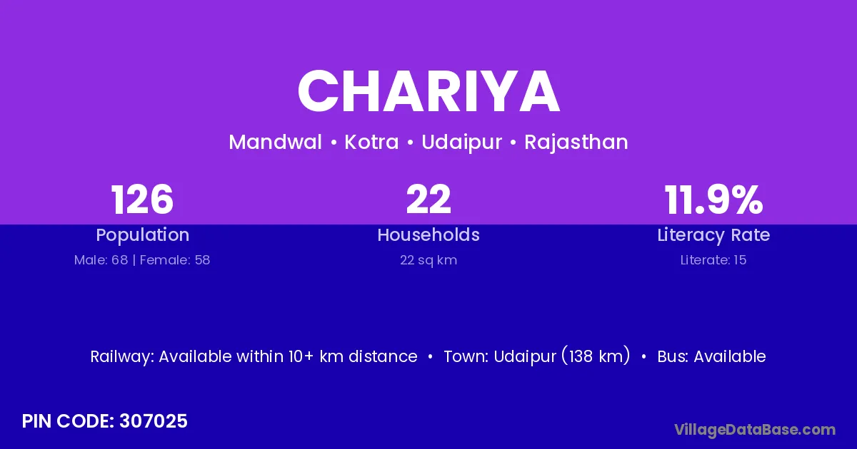 According to Census 2011 information, the village code of Chariya village is 331506.