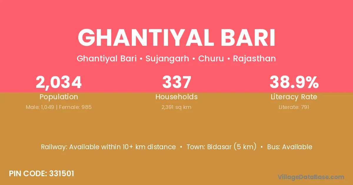 Bidasar (5 km) is the nearest town to Ghantiyal Bari village for major economic activities and is located approximately 5 km away.