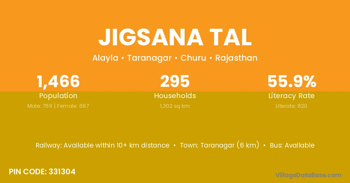 Taranagar (6 km) is the nearest town to Jigsana Tal village for major economic activities and is located approximately 6 km away.