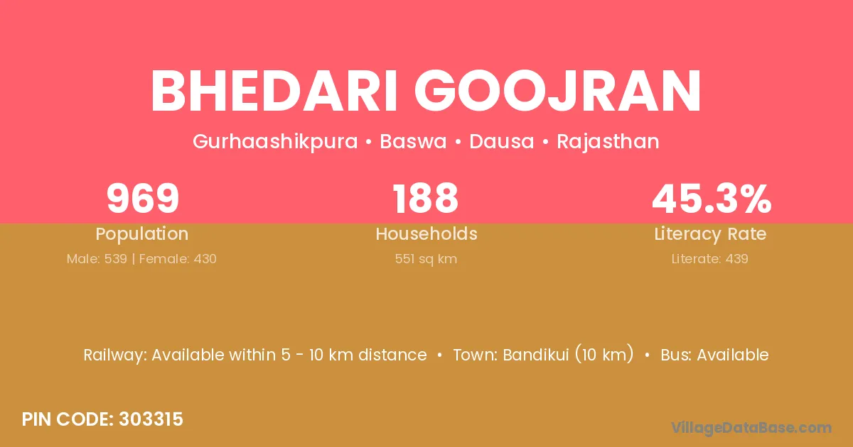 According to Census 2011 information, the village code of Bhedari Goojran village is 303315.