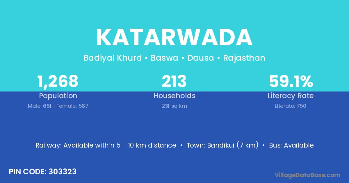 Bandikui (7 km) is the nearest town to Katarwada village for major economic activities and is located approximately 7 km away.