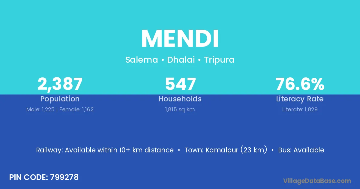 Bandikui (11 km) is the nearest town to Mendi village for major economic activities and is located approximately 11 km away.