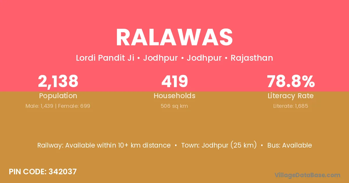 Lalsot (11 km) is the nearest town to Ralawas village for major economic activities and is located approximately 11 km away.