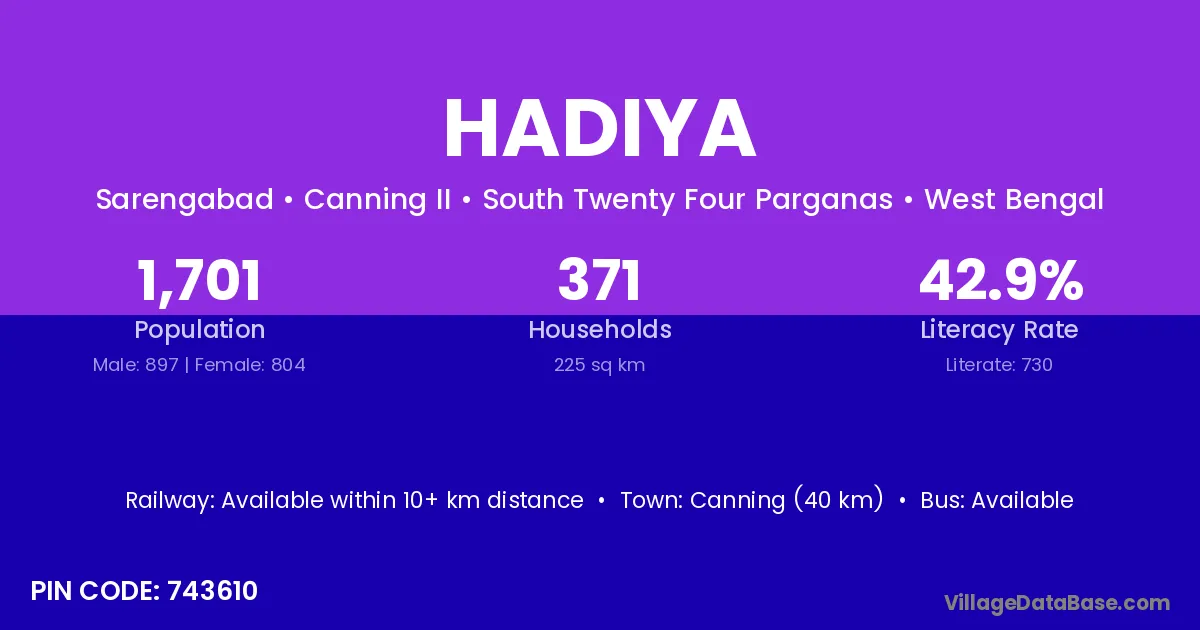 There are approximately 815 households in Hadiya village.
