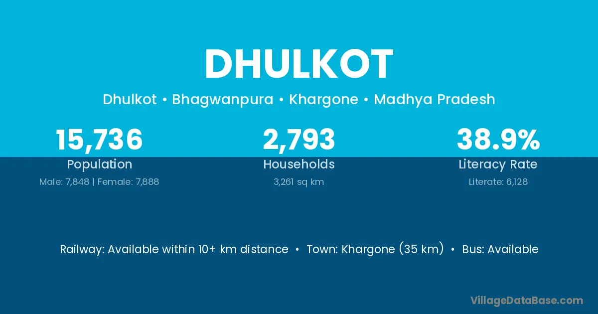 Dhulkot village has a total population of 1,628 people, of which 838 are males and 790 are females.