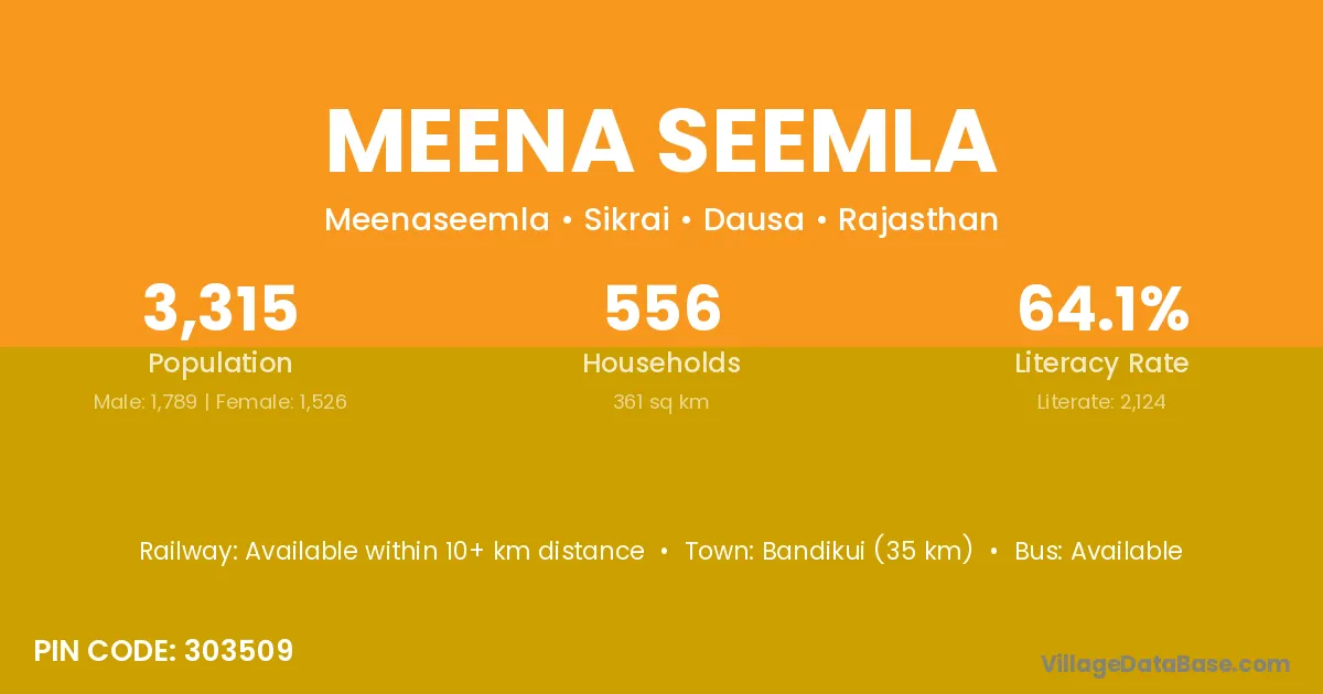 Bandikui (35 km) is the nearest town to Meena Seemla village for major economic activities and is located approximately 35 km away.
