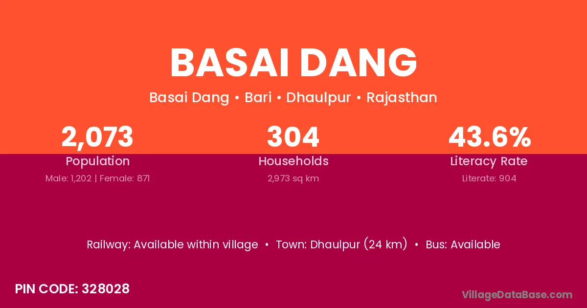 Dhaulpur (24 km) is the nearest town to Basai Dang village for major economic activities and is located approximately 24 km away.
