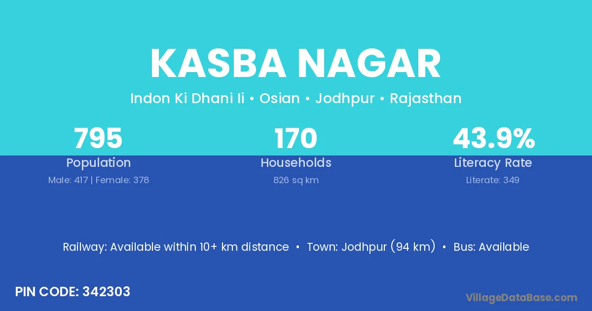 Dhaulpur (28 km) is the nearest town to Kasba Nagar village for major economic activities and is located approximately 28 km away.