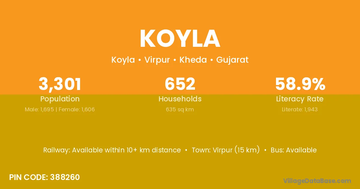 According to Census 2011 information, the village code of Koyla village is 328021.