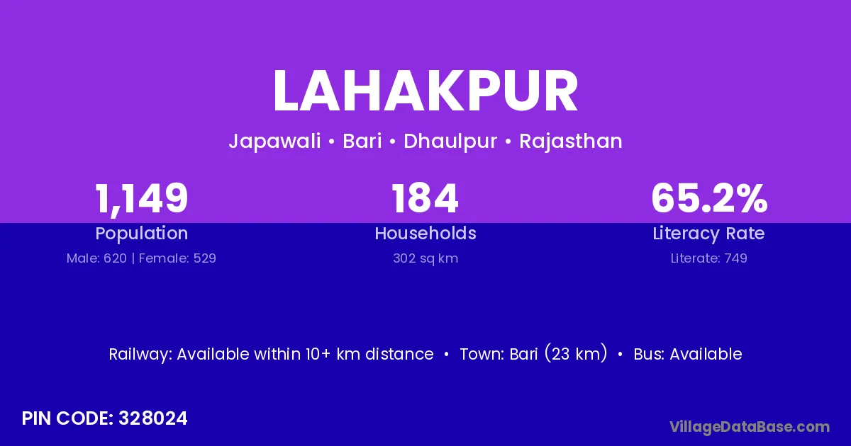 Bari (23 km) is the nearest town to Lahakpur village for major economic activities and is located approximately 23 km away.