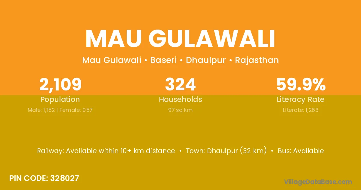 Dhaulpur (32 km) is the nearest town to Mau Gulawali village for major economic activities and is located approximately 32 km away.