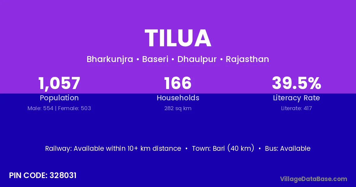 Bari (40 km) is the nearest town to Tilua village for major economic activities and is located approximately 40 km away.