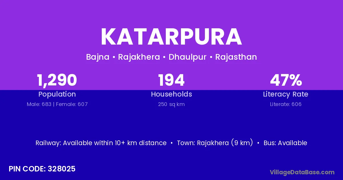 Rajakhera (9 km) is the nearest town to Katarpura village for major economic activities and is located approximately 9 km away.
