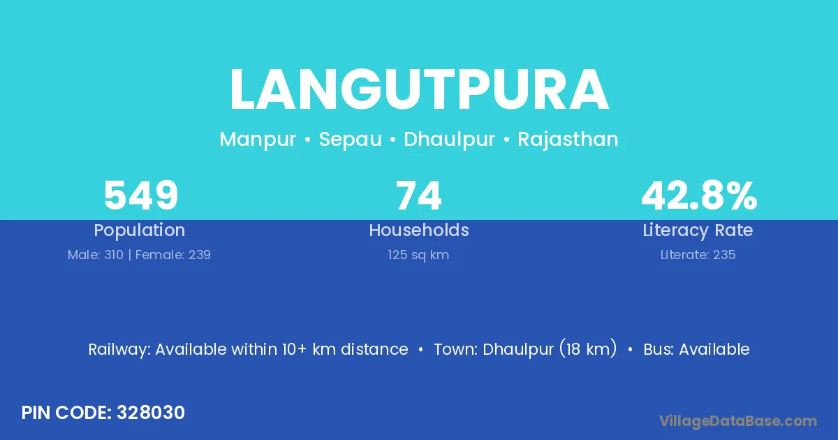 Dhaulpur (18 km) is the nearest town to Langutpura village for major economic activities and is located approximately 18 km away.