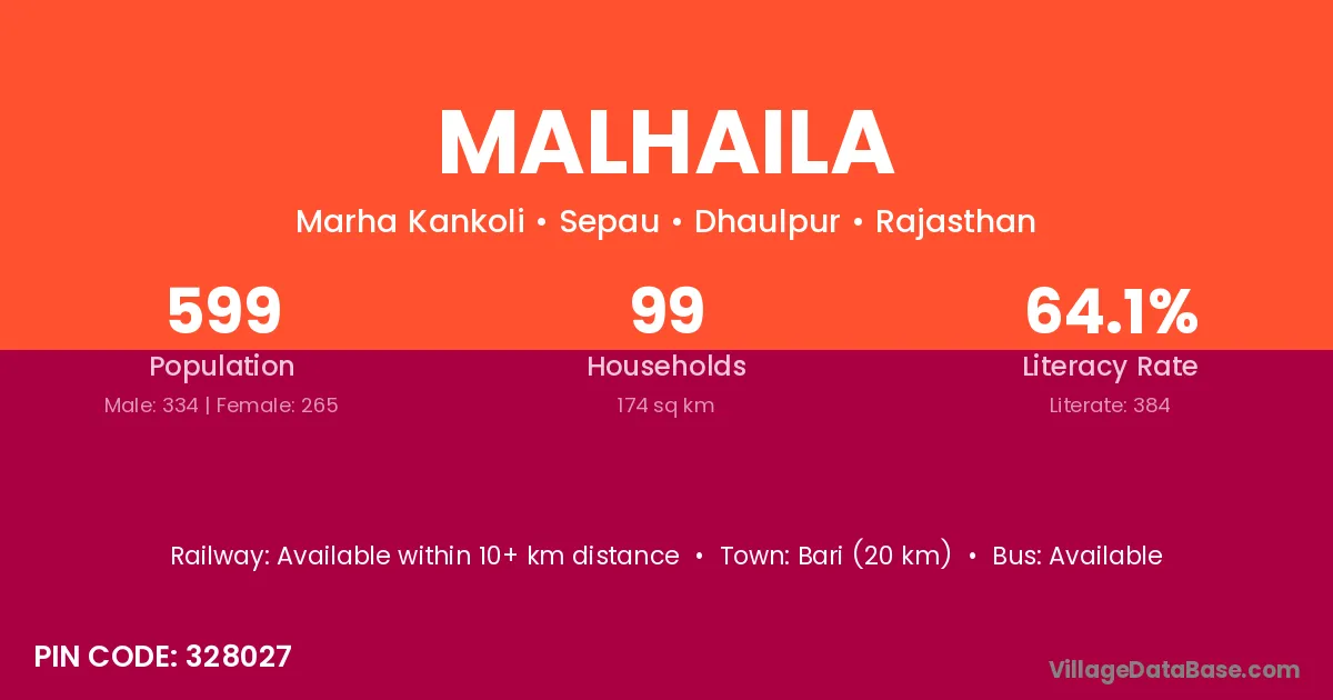Bari (20 km) is the nearest town to Malhaila village for major economic activities and is located approximately 20 km away.