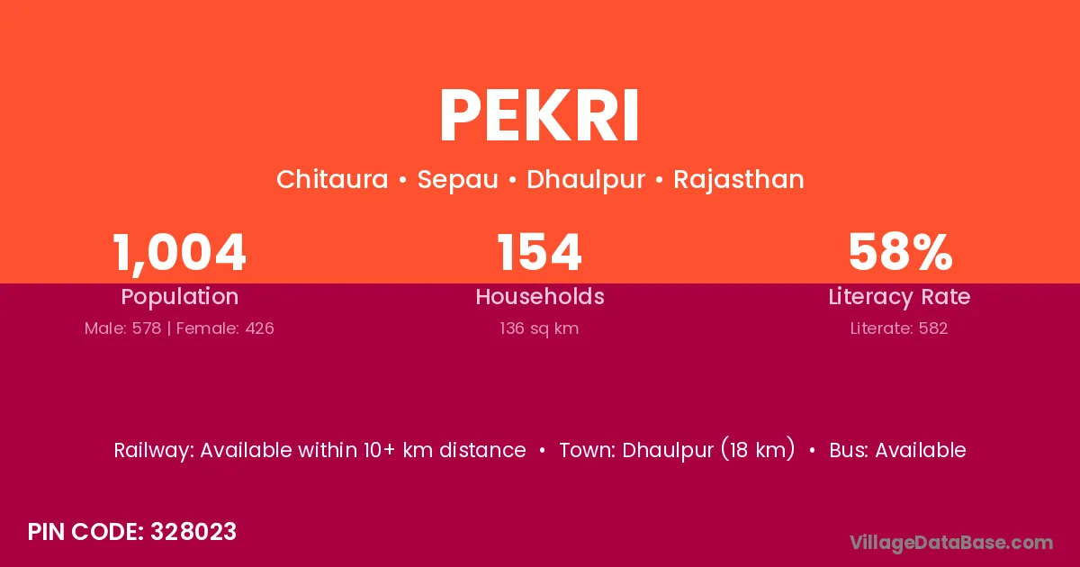 Dhaulpur (18 km) is the nearest town to Pekri village for major economic activities and is located approximately 18 km away.