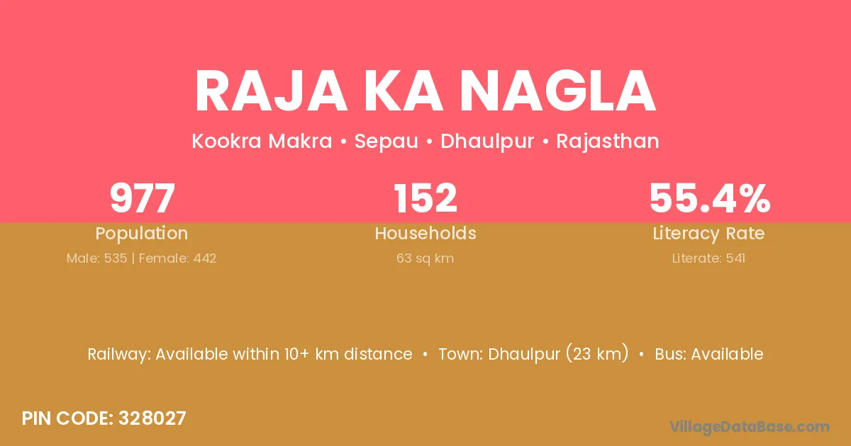 Raja Ka Nagla village has a total population of 977 people, of which 535 are males and 442 are females.