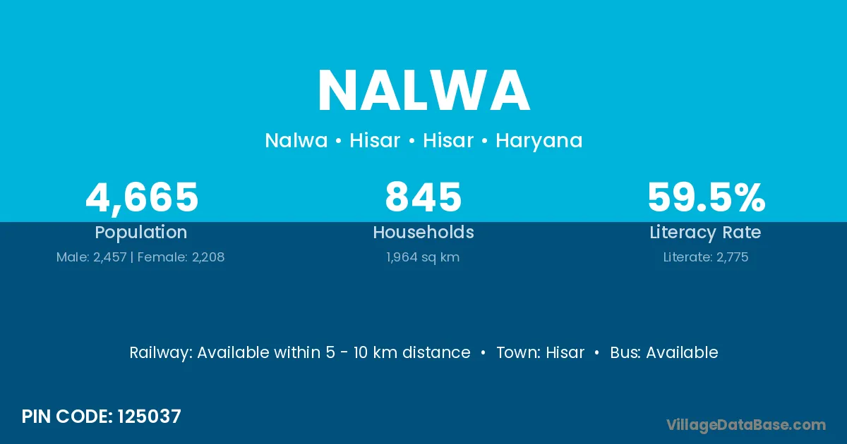 According to Census 2011 information, the village code of Nalwa village is 314804.