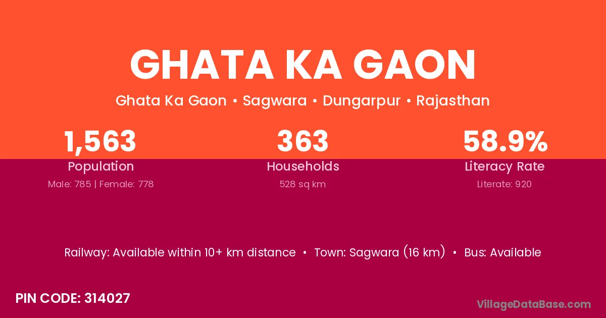 Sagwara (16 km) is the nearest town to Ghata Ka Gaon village for major economic activities and is located approximately 16 km away.