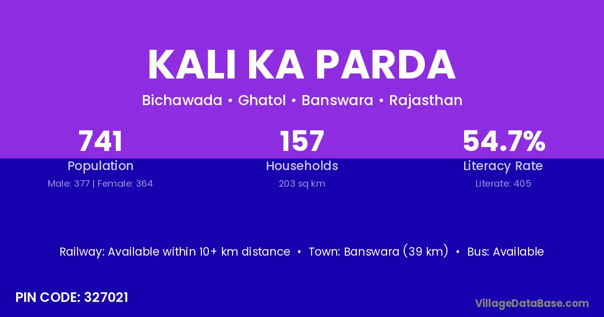 Sagwara (28 km) is the nearest town to Kali Ka Parda village for major economic activities and is located approximately 28 km away.