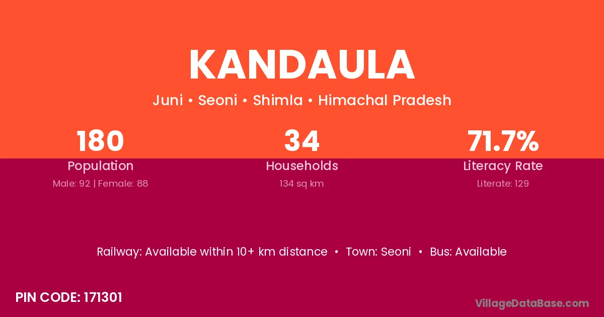 The literacy rate of Kandaula village is 48.04%. Male literacy stands at 56.16% and female literacy at 40.65%.