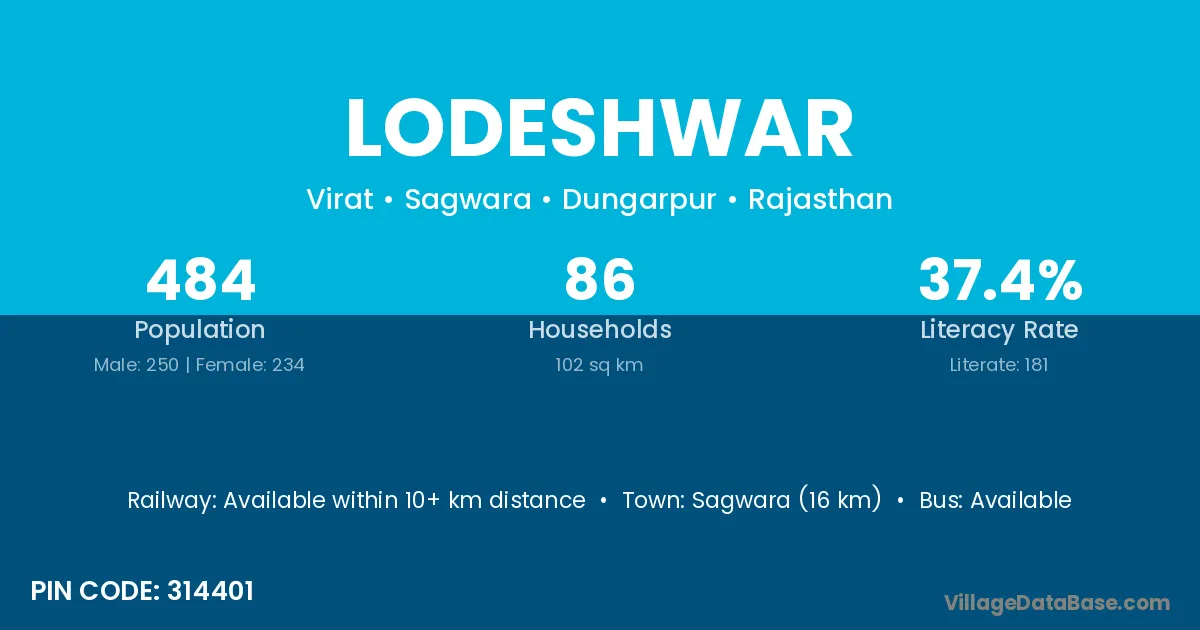 Sagwara (16 km) is the nearest town to Lodeshwar village for major economic activities and is located approximately 16 km away.