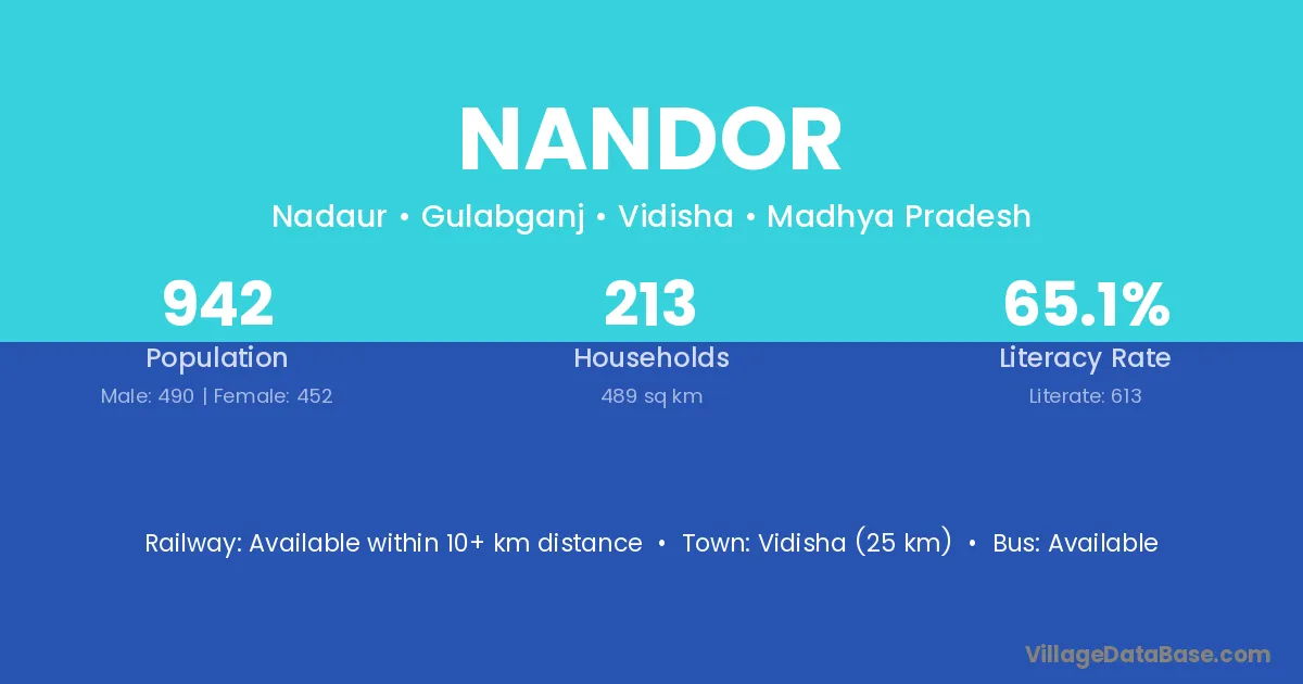 Sagwara (8 km) is the nearest town to Nandor village for major economic activities and is located approximately 8 km away.