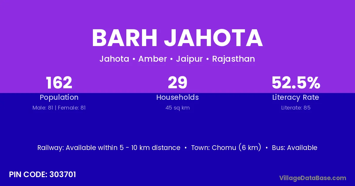 Chomu (6 km) is the nearest town to Barh Jahota village for major economic activities and is located approximately 6 km away.