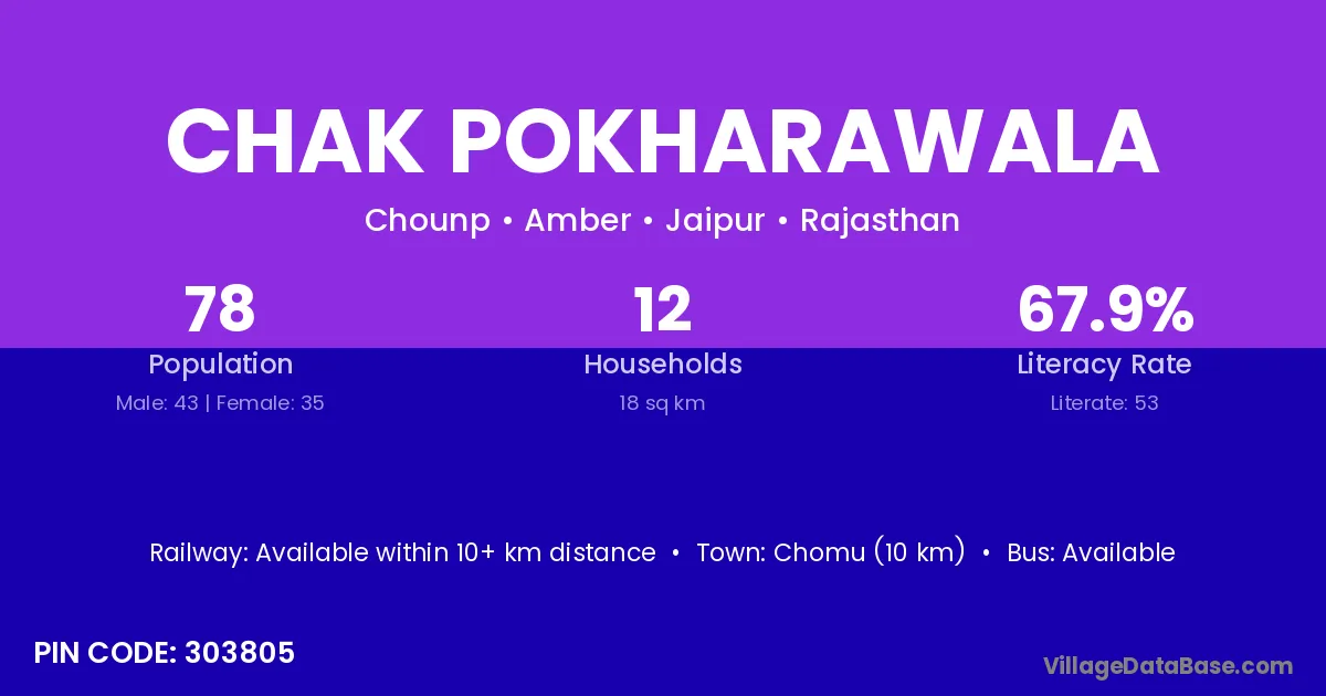 Chomu (10 km) is the nearest town to Chak Pokharawala village for major economic activities and is located approximately 10 km away.