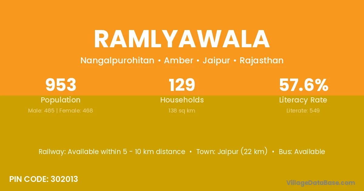 Jaipur (22 km) is the nearest town to Ramlyawala village for major economic activities and is located approximately 22 km away.