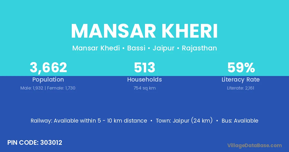 Jaipur (24 km) is the nearest town to Mansar Kheri village for major economic activities and is located approximately 24 km away.