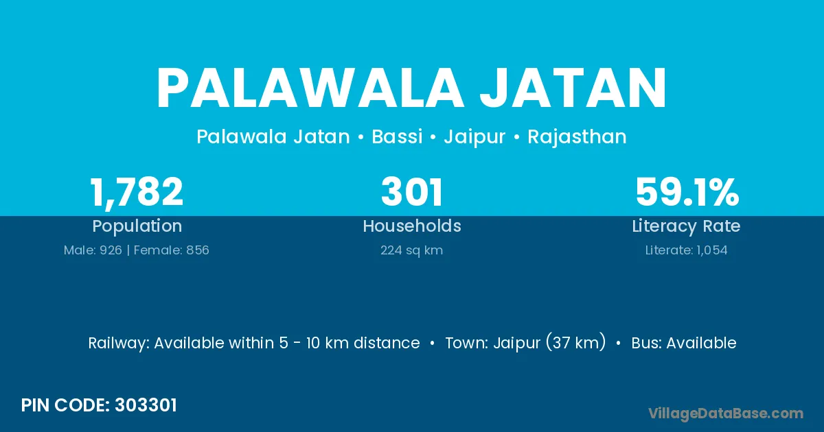 Jaipur (37 km) is the nearest town to Palawala Jatan village for major economic activities and is located approximately 37 km away.