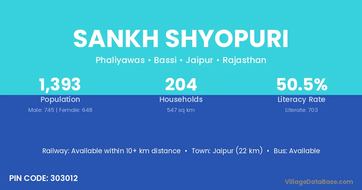 Jaipur (22 km) is the nearest town to Sankh Shyopuri village for major economic activities and is located approximately 22 km away.