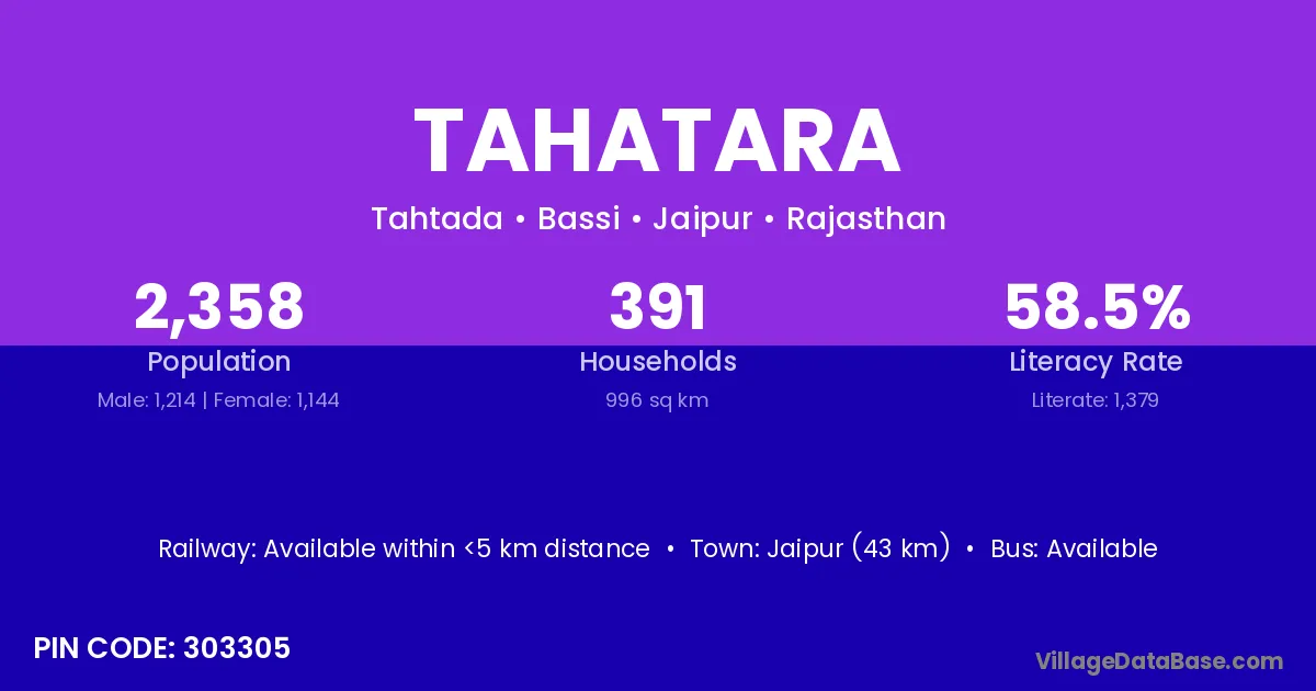 According to Census 2011 information, the village code of Tahatara village is 303305.