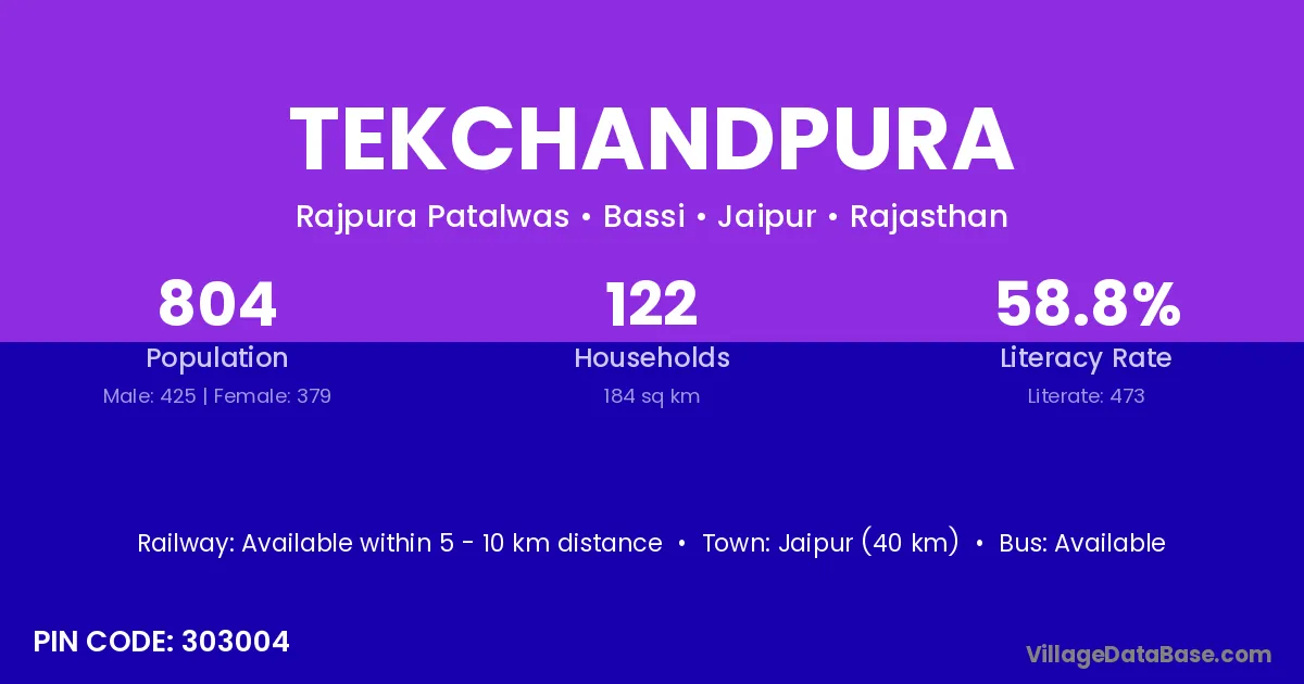 According to Census 2011 information, the village code of Tekchandpura village is 303004.
