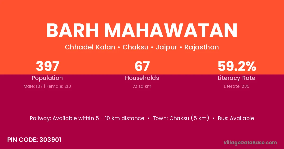 Chaksu (5 km) is the nearest town to Barh Mahawatan village for major economic activities and is located approximately 5 km away.