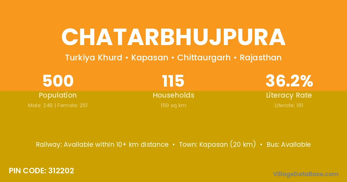 There are approximately 6 households in Chatarbhujpura village.