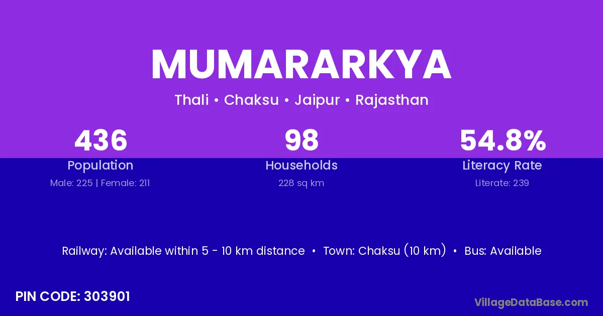 Chaksu (10 km) is the nearest town to Mumararkya village for major economic activities and is located approximately 10 km away.