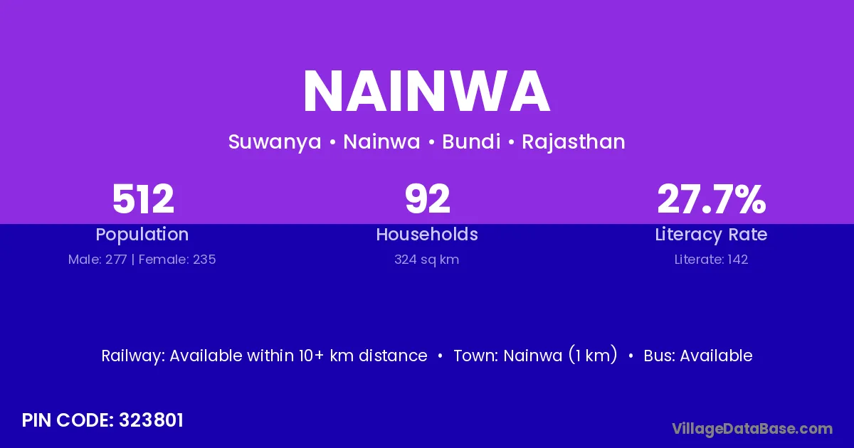 Chaksu (16 km) is the nearest town to Nainwa village for major economic activities and is located approximately 16 km away.