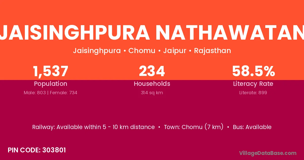 Chomu (7 km) is the nearest town to Jaisinghpura Nathawatan village for major economic activities and is located approximately 7 km away.