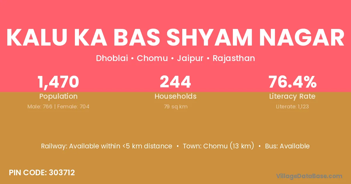 Kalu Ka Bas Shyam Nagar village has a total population of 1,470 people, of which 766 are males and 704 are females.