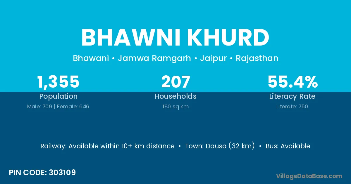 Dausa (32 km) is the nearest town to Bhawni Khurd village for major economic activities and is located approximately 32 km away.